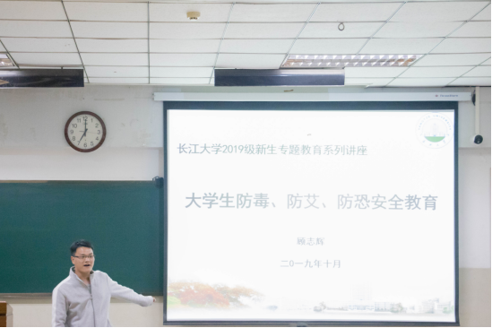 安全教育讲座开始前,为活跃现场氛围,主讲人顾老师带领现场同学做了简单而有趣的小游戏。讲座正式开始,顾老师讲解内容主要分为三大方面:大学生毒品预防教育、大学生艾滋病预防教育以及大学生反恐应急教育。