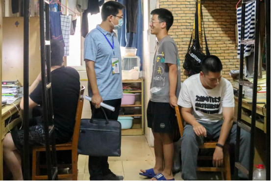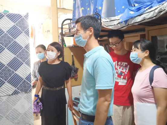 (摄/袁缘 罗娜 张芷艺 /韩思洁 范期明秋天是宿舍安全隐患的多发季节为切实了解学生住宿情况,加强宿舍管理,9月3日下午14时30分,外国语学院院长谈宏慧、党委书记危煜祥副院长彭沂、党委副书记魏红洁以及各年级辅导员和班主任老师齐聚汉科学苑现场了解公寓学生们的住宿情况,并对学院学生们生活和学习等方面给予关切和指导。