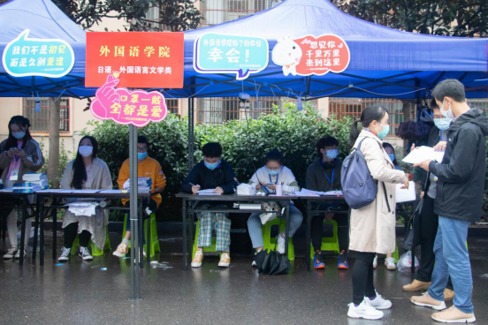 在对迎新点的视察中,校领导院领导和老师们看到即使下雨不止,但负责迎新工作的学生会和志愿者们仍有条不紊的进行迎新工作,领导和老师们对这种认真负责的态度大加赞赏,并鼓励36365官网学生会和志愿者们继续努力,更好的做好新生的报到工作,给新生留下一个美好的入学体验。