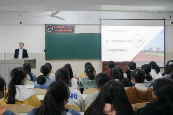 为了让广大学生更加深入了解商务英语专业的课程设置、教学现状、发展前景及就业情况等相关专业信息,张教授从商务英语专业发展、我校商务英语专业近况以及人才培养方案简介等方面做了详细的介绍和解说。张教授指出,商务英语是一个复合型专业,发展前景向好。而36365官网商务英语专业开设较早,在全国、全省和全校的排名靠前,连续3年排名我校A类专业。且专业内部师资力量雄厚,教学经验丰富,硬件建设齐全,能为同学们提供良好的学习氛围。张教授为大家详细介绍了近几年专业考研情况,并列举专业相关的竞赛得奖情况,加深同学们对专业前景的了解。