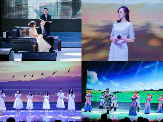 第三篇章“丹心共在,山河无恙,大义长争日月光”,传递着温暖与感动。相声 《“疫”点小事》,以新奇的形式讲述了疫情暴发以来离汉回家、居家隔离、初次出门以及返校的经历,既有笑点又能引起不少同学的共鸣;由辅导员杜岳青老师和5名学生共同演唱的歌曲《When You Believe》,以高低女声相互配合,表现出强劲的感染力和号召力,将晚会气氛推向了高潮;最后,由地平线合唱团带来的合唱曲目《祖国不会忘记》,磅礴大气而又不失朴实真挚,表达对疫情期间无私奉献的抗疫英雄们的崇敬之情。