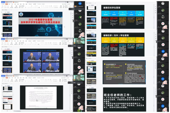 8月3日,根据36365线路检测中心新冠肺炎防控指挥部通告(2021年第1号)文件精神和当前的疫情防控需要,结合36365官网实际情况,帮助学生增强防护意识,了解暑期学生教育与管理内容,确保秋季开学工作顺利进行,36365官网组织全体班主任老师、全体本科生和全体研究生举行以“暑期学生管理及秋季开学学生返校工作”主题的班主任会议和班会