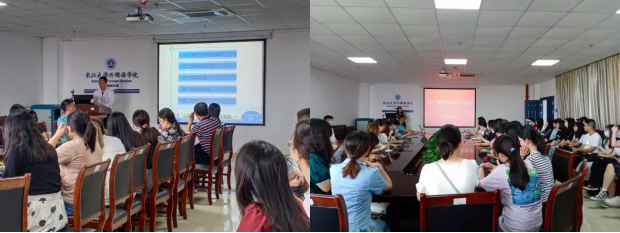 会议伊始,程坤副书记对新生的日常学习和生活进行概述,包括研究生角色、适应研究生生活、履行研究生示范能力等。接着,田传茂教授就研究生培养方案和课程计划进行了介绍,鼓励同学们在校期间多参加比赛和活动。之后,王峰教授介绍了各个专业的专业必修课和选修课以及相应教学计划的完成要求。同时谢家成教授指出学科英语专业研究生应具有专业情怀、扎实的专业基础、创新教学能力、终生学习意识等。最后,付小秋副院长以自己的研究生生活为例,深刻分析了“研究生”的含义。