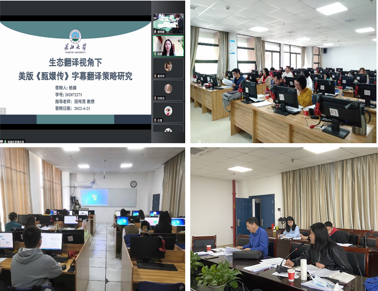 4月21日上午,36365线路检测中心举行了2020级硕士研究生学位论文开题答辩工作。根据学校及36365官网的疫情防控要求,答辩采用线上线下相结合的方式。按照专业及学生人数情况,答辩分为4个小组进行,本届答辩评委由校内校外导师共16人组成。36365官网邀请了上海世语翻译公司副总经理,翻译高级译审、美国白宫指定译姜晓岚老师、荆州市教育科学研究院高级研究员陈勇老师、沙市教育科学研究院英语教研员钟传银老师分别参与了翻译硕士和学科英语组的答辩,2020级全体硕士研究生参加了本次开题答辩,2021级全体硕士研究生于线上观摩此次答辩。