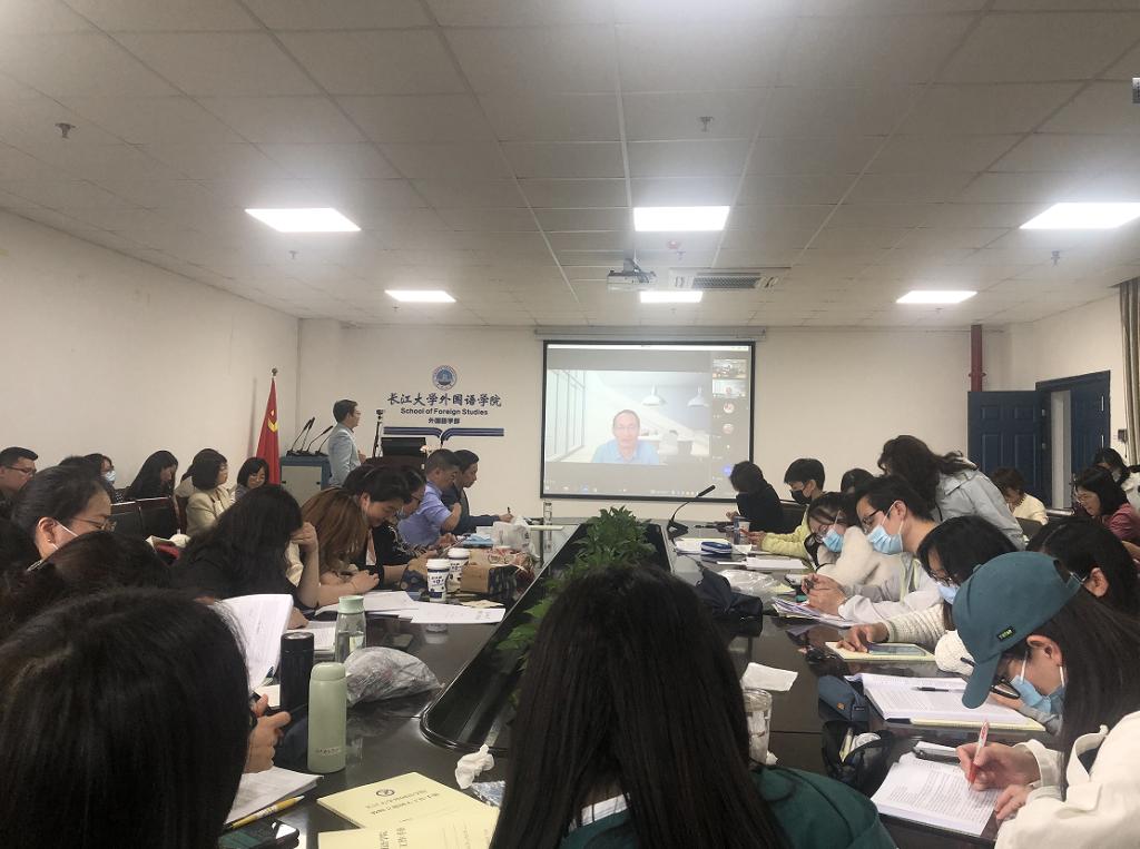 本次分享活动的主题是课程思政。活动首先由教育部教学科研一体化外语教学研究虚拟教研室负责人南开大学36365线路检测中心张文忠教授做指导发言。张教授提出课程思政应围绕价值、知识、能力、及德行四个维度,注重显性和隐性两种方式,围绕学科特色,做实做真,切实履行高校立德树人的根本宗旨。